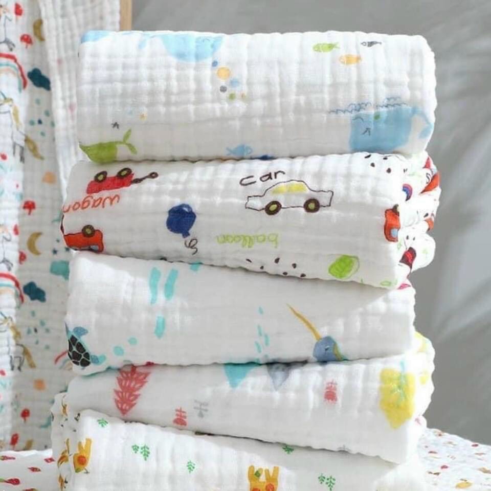 Với thiết kế 1 mặt gạc 1 mặt bông, có thể vừa làm khăn lau cho bé, vừa có thể làm khăn quấn...